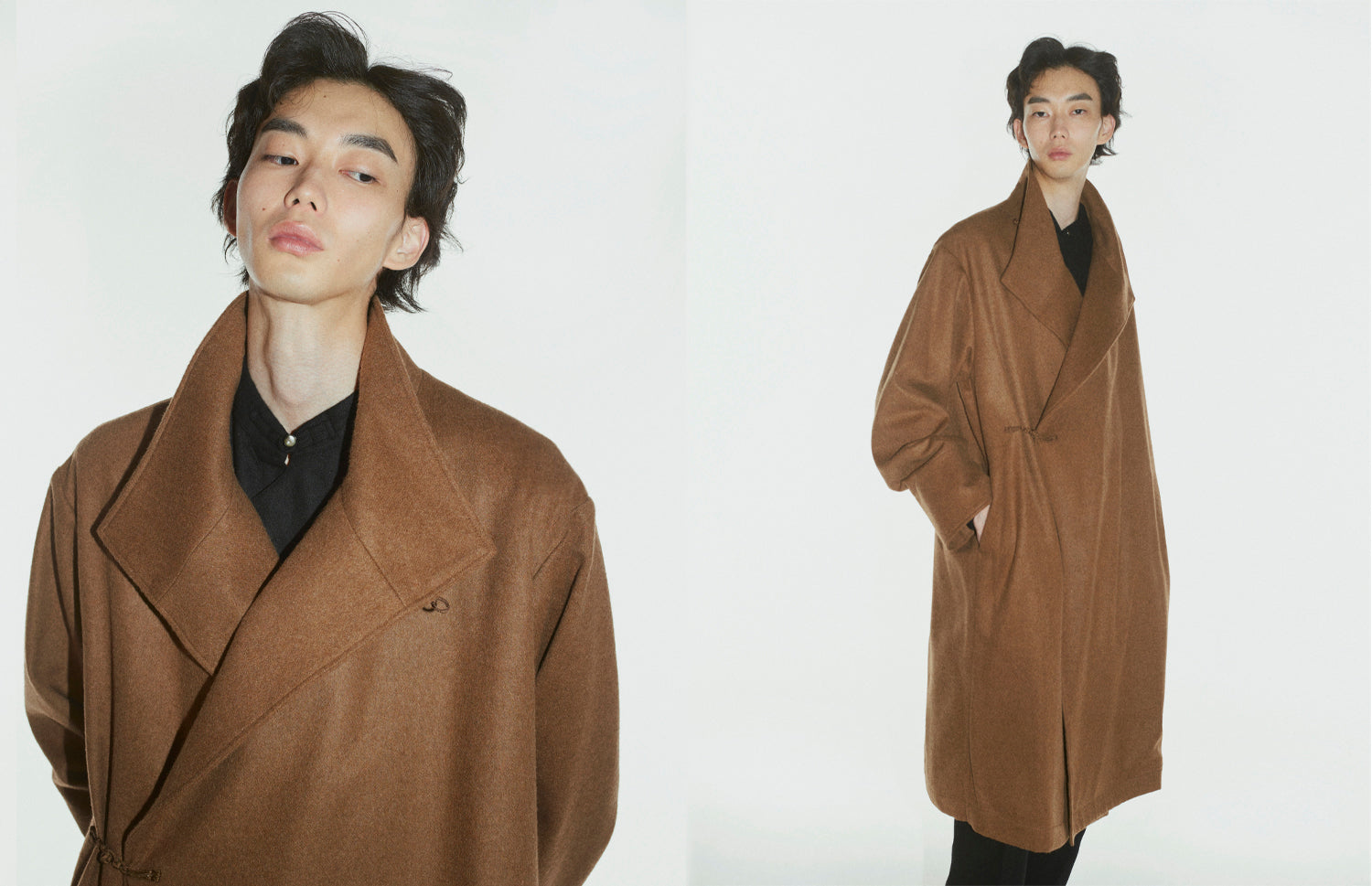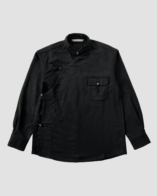 The design of the main garments is inspired by the Tibetan Chuba—a warm, ankle-length robe tied at the waist with a long sash, originally designed for Tibet’s cold climate. Its upper portion serves as a large pocket for carrying everything from wallets to bowls. This design is not unique to Tibet; similar traditional garments can be found across Japanese, Bhutanese, Chinese, Korean, Mongolian, and other Asian cultures.