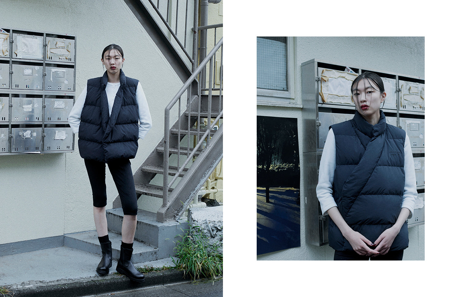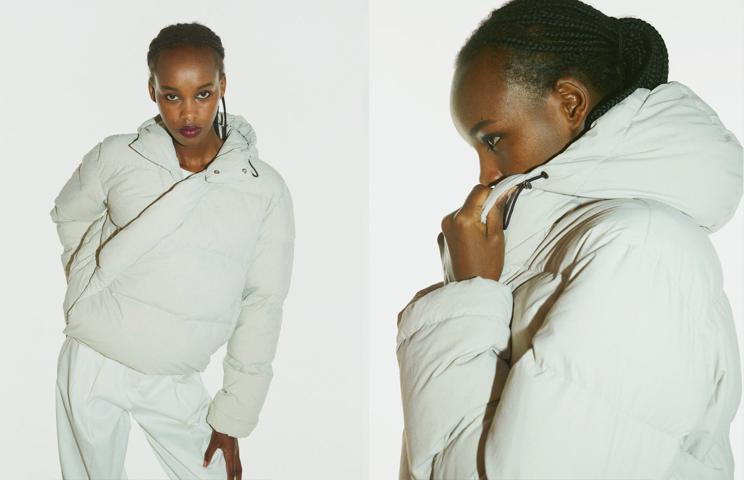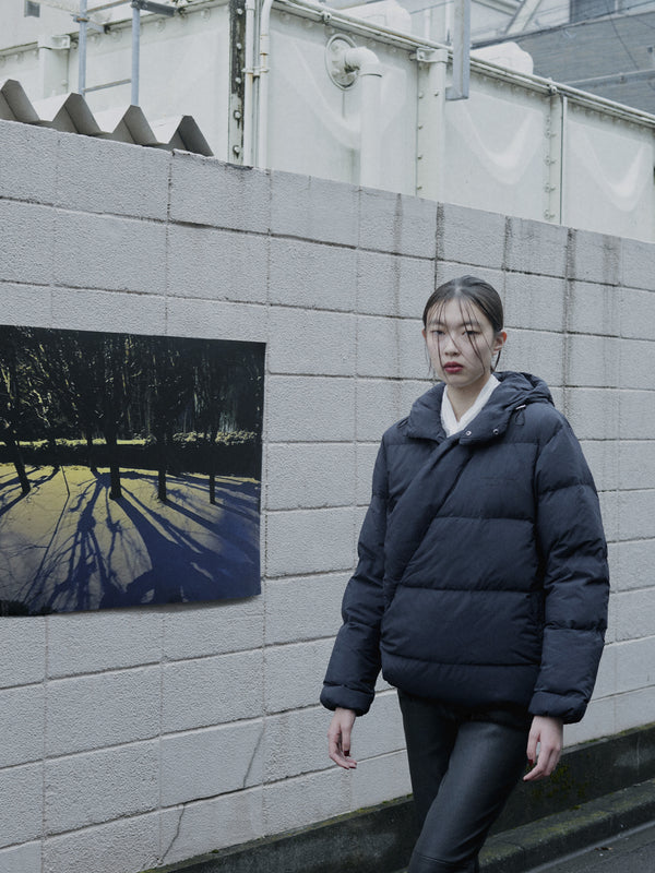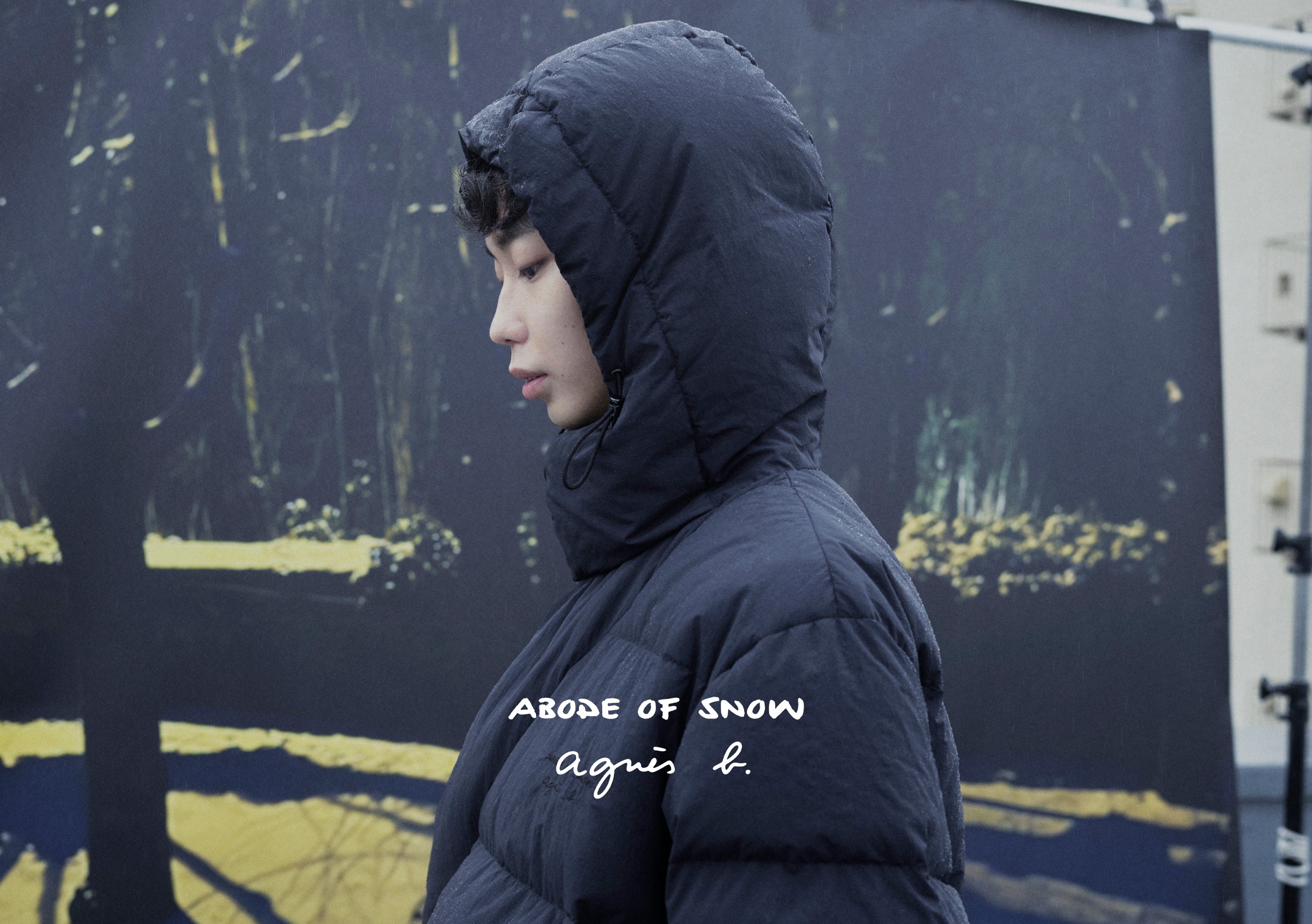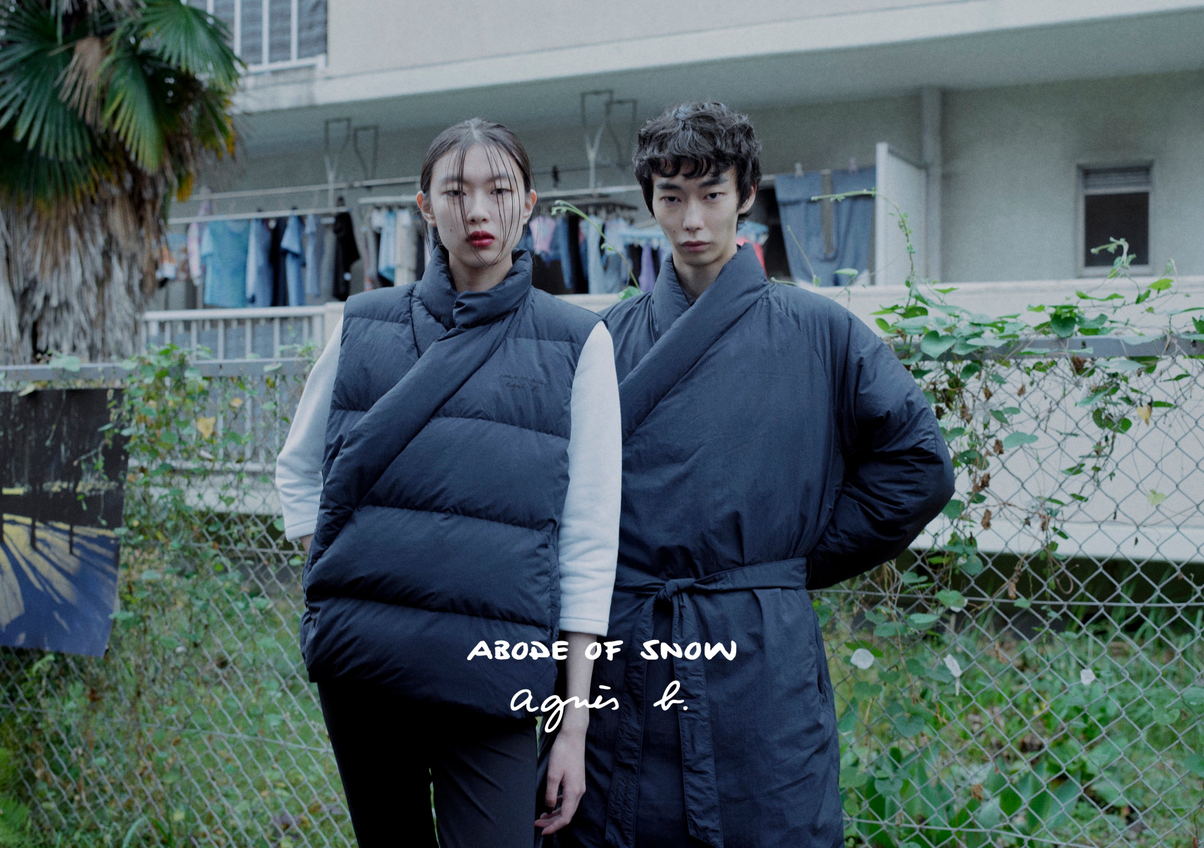 For this collaboration, Agnès b. customized the lining of the Abode of Snow Chuba Down Coat in an electric blue—a color she loves—which adds a graphic touch and brightens the garment. The photograph printed on the lining of the Abode of Snow Mila Down Vest and Mila 2.0 Down Jacket was taken by Agnès b. in her garden during winter. Deeply inspired by her surroundings and photography, Agnès has been printing her personal photos on garments since 1996. While maintaining the silhouette of the Abode of Snow garments, she has added her own signature by incorporating a snow landscape from her immediate intimate environment.