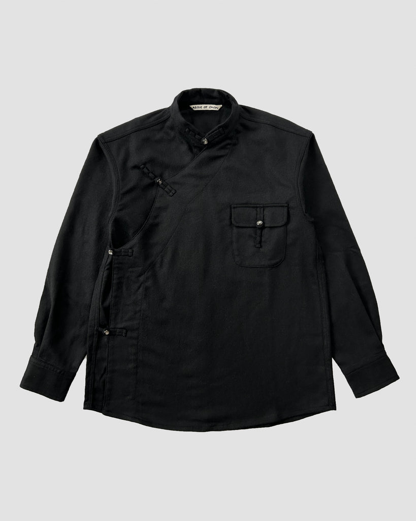 This piece combines the traditional silhouette of Tibetan garments with the timeless appeal of a classic shirt.